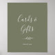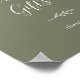 Cette affiche minimale de feuilles avec des cartes et des cadeaux vert foncé est parfaite pour un mariage bohème ou une fête de mariage. Le design présente une simple silhouette de feuille de verdure en vert olive avec un style bohème montagneux minimaliste. La ligne de texte au bas de l'affiche peut être personnalisée avec la date, les noms des mariés, ou un court message comme "Merci". Cette affiche peut être utilisée pour un mariage ou tout autre événement ou fête.