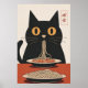 Affiche Minimalist Black Cat Eating Spaghetti Japanese Art