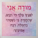 Affiche Modah Ani Prière juive de la fille hébraïque