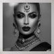 Monochrome noir et blanc Portrait de mode classique Femmes bijoux Étonnantes Magnifiques Glamour. Femme exotique Étonnante Femme glamour tête bijoux gemmes. Une affiche de femmes dorées Glamour Magnifiques Femme cheveux bijoux collier ras du cou glamour portrait