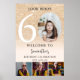 Celebrate sixty in style with this sparkling welcome sign featuring a faux gold glitter background, bold modern typography, and four personal photos—including a childhood throwback. A fun and fabulous way to greet guests and set the tone for a milestone birthday celebration.