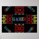 A fun modern design for gamers. A shimmery mosaic text pattern of the word "gamer" make up the background and the word GAMER in various shimmery colors in the center to grab your attention.