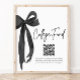 Poster d'inscription pour le Fonds d'études supérieures du Black Bow QR Code moderne 🎓 🎀 📱 Chic, moderne et plein de dessein - cette affiche d'études pour la Black Bow présente un design minimaliste élégant avec un arc noir élégant et un espace pour un code QR reliant à un fonds d'études supérieures. Parfait pour l'affichage à votre fête de remise des diplômes, il permet aux invités de scanner et de contribuer facilement. Une touche classe et réfléchie pour célébrer le prochain grand chapitre de votre diplômé ! 🖤 ✨ 🎓