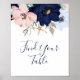 Ce panneau de table moderne nautique floral est parfait pour un mariage ou une douche de mariée sur un bateau de croisière ou sur la plage. Le design fantaisiste présente des fleurs aquarelles rose blush et bleu marine avec des accents d'étoiles de mer dorées, lui donnant une ambiance balnéaire. Ce panneau peut être utilisé pour un mariage ou tout événement ou fête.