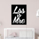 Moins c'est plus, moins c'est plus. Design de typographie avec citation positive. Design typographique avec citation inspirante, citation motivationnelle. Discours inspirant et provocateur. Jolie typographie avec des mots positifs et un dicton drôle, une citation drôle. Version noire.