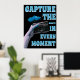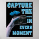 "Capture moment, photographie, concept art Poster" présente une fusion captivante de la photographie et de l'art concept audacieux. Avec de grandes lettres bleues qui disent "Capturer la beauté à chaque instant" sur un arrière - plan noir, il met en évidence une caméra vintage et des fleurs bleues délicates. Ce contraste saisissant crée un visuel puissant et moderne, idéal pour améliorer les espaces créatifs ou inspirant les photographes et les amateurs d'art.