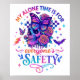 Design coloré et dynamique, avec un crâne avec des papillons, des roses et une chauve-souris volante. Le texte coloré dit : "Mon seul temps est pour la sécurité de tous". Ce design est disponible sur une grande variété de produits.