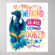 Design coloré et dynamique, avec un dragon avec un livre ouvert et des roses bleus. Le texte coloré dit : "Mon week-end est complet". Ce design est disponible sur une grande variété de produits.