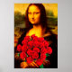 Affiche Mona Lisa tenant des roses rouges Leonardo Da Vinc