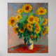 Affiche représentant la peinture à l’huile de Claude Monet Bouquet of Sunflowers (1881). Beaux tournesols dans un vase bleu au-dessus d'une table rouge. Un grand cadeau pour les amateurs d'impressionnisme et d'art français.
