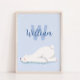 Nom de bébé monogramme initial mignon sur bleu arrière - plan et ours polaire d'hiver, parfait pour la crèche pour enfants, chambre pour enfants, chambre, salle de jeux et autre pièce. nom initial et monogramme personnalisé et couleur arrière - plan. Conception neutre pour les garçons et les filles.