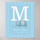 Joli affiche de monogramme initial pour la nurserie, mettant en vedette le nom de votre bébé et l'année de leur arrivée avec de doux éléphants parents et bébé à pois. Un beau souvenir à chérir !