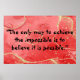 Transformez votre espace avec le Monogramme Inspirationnel : Noir sur affiche rouge, taille 60" x 40". Avec un monogramme noir audacieux contre un arrière - plan rouge et or vibrant et la citation, "La seule façon d'atteindre l'impossible est de croire que c'est possible", cette affiche fait un ajout dynamique à n'importe quelle pièce. Idéal pour les bureaux, les espaces de vie ou n'importe où vous cherchez à ajouter de l'inspiration et du style.
