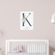 Affiche Monogramme lettre K Fleurs blanches et feuillage