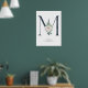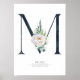 Affiche Monogramme lettre M Fleurs blanches et feuillage