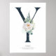 Affiche Monogramme lettre Y Fleurs blanches et feuillage