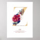 Affiche Monogramme lettre Z floral bleu marine et bordeaux