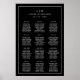 Poster simple mariage avec un design moderne mais élégant avec votre monogramme à deux lettres, nom et date avec le graphique ci-dessous, entouré d'une fine bordure. Le modèle dispose de trois colonnes avec douze tables de huit convives par exemple, mais peut être customisé pour le nombre de tables et d'invités. Tout le texte est en blanc sur un arrière - plan noir et peut être modifié à n'importe quelle couleur en cliquant sur le bouton "personnaliser". Un design chic et élégant pour un mariage qui conviendra parfaitement à un couple minimaliste.
