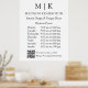 Panneau d'affiche des heures d'affaires minimalistes modernes. Noir & Blanc ou choisissez vos couleurs personnalisées. Ajoutez votre site Web ou votre adresse Web de médias sociaux au QR Scan Code. Parfait pour les commerces de détail, les petites entreprises, les salons, les spas, les boulangeries, les cafés, les restaurants, les bars et plus encore. Facile à personnaliser avec vos initiales monogrammes, nom d'entreprise et informations, photos, slogan ou même ajouter votre logo ou votre marque personnelle.