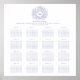 Bleu violet dessiné à la main feuille d'art botanique mariage s'il vous plaît trouver votre siège, plan de siège. Ce plan de graphique de table est un simple clair classique est facile à lire 16 disposition de table. Un design de feuille simple encerclant votre propre design d'initiales monographiques. Modifiez avec les détails de votre mariage ou événement et les noms des invités de table. En bleu violet et en gris texte sur blanc. D'autres couleurs et objets correspondants sont disponibles. © Dessin et dessin de la feuille d'origine par Sarah Trett pour www.mylittleedenweddings.com sur Zazzle.