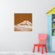 Illustration de la cabane Syme sur le pic Fathoms, avec le mont Taranaki en arrière - plan. Ce design est dessiné dans un monochrome marron et a les étoiles Matariki au-dessus dans le ciel. Un design pour tous ceux qui aiment le randonnée et le tramping en Nouvelle-Zélande.