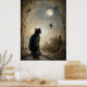 Un chat noir s'assoit tranquillement, gardant une lanterne brillante à minuit. Cette empreinte murale, mélodieuse et détaillée, capture le lien intemporel entre les sorcières et leurs familles. Idéal pour les chambres cottagecore foncé, les studios magiques et la décoration inspirée d'Halloween toute l'année. Un hommage puissant mais calme à l'esprit du protecteur de la féline.