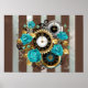 Affiche Montre Steampunk et roses turquoise sur fond rayé