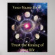 Custom Moon Phases Wall Art featuring sacred geometry and a personalized affirmation.