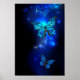 blue, glowing butterflies morpho on a dark ground. Morphine. Design avec des babouins.