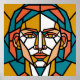Illuminate your collection with this vibrant Stained Glass-inspired portrait. Utilizing a complex web of bold black outlines and prismatic color blocks, this artwork mimics the luminous quality of a cathedral window reimagined for the modern era.