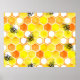 Motif d'aquarelle transparente avec peignes de miel et petites abeilles