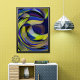 Cette magnifique oeuvre d'art est une excellente façon d'ajouter une touche unique à tout espace de vie. Avec ses couleurs vives et audacieuses (bleus, violets, verts et jaunes), ce superbe design est un véritable début de conversation. Sa motif colorée est composée de lignes ondulées qui tourbillonnent vers l'extérieur, créant une esthétique fascinante et captivante. Que ce soit dans un bureau ou un salon, cette affiche murale apportera une pop de couleur et un style futuriste.