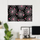Une affiche avec un motif mignon sans soudure avec des toiles blanches et des araignées roses.