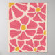 Un motif floral d'inspiration rétro dynamique et ludique, avec des pétales roses stylisés aux contours sombres et des centres jaunes vifs, dressés contre un arrière - plan beige doux. Les formes organiques et la palette de couleurs chaudes évoquent une les années 70 esthétique nostalgique.