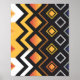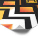 Cette conception géométrique audacieuse et complexe combine à merveille diamants, zigzags et formes de dégradé. Le côté gauche affiche des carrés orange et jaunes vibrants, tandis que le côté droit se transforme en nuances plus foncées de bleu et de noir, avec des contours alternants de diamants et de lignes. Les contrastes tranchants entre les couleurs chaudes et cool, ainsi que les formes géométriques précises, créent un visuel équilibré mais dynamique. Parfait pour les designs modernes, les papiers peints et l'art décoratif.