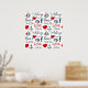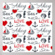Motif nautique sans voile avec symboles nautiques (voilier, ancre, vagues, hippocampe, coquillage) et décoration de coeur rouge avec design texte sur arrière - plan blanc