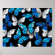 Affiche Motif sans couleur foncée avec papillons bleus Mor