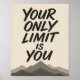 Inspire greatness every day with this striking motivational quote poster. The design features the powerful phrase "Your Only Limit Is You" in a bold, hand-painted brush font that adds a dynamic, artistic flair. Below the text is a subtle, layered mountain silhouette graphic, symbolizing challenges overcome and the heights of achievement. This poster is the perfect inspirational wall art for a home office, gym, dorm room, or study space. It makes a fantastic gift for entrepreneurs, students, athletes, or anyone needing a daily reminder to push past self-imposed boundaries and embrace personal growth. A great piece of typography art for modern decor.