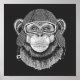 Cette conception comprend un chimpanzé portant un casque d'aviateur ou de motocyclette.