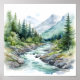 Mountain River - Alaska - USA - Aquarelle de peinture.