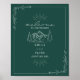 Accueil mariage avec montagnes et illustration à feuillage persistant sur arrière - plan émeraude.
