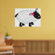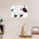 Un mouton à visage noir avec beaucoup de laine blanche et une fleur dans les cheveux. Ce design semble vraiment efficace sur ces Poster