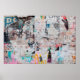 Affiche Mur en brique patiné exposé avec poteau de rue déc
