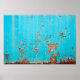Affiche Mur en métal peint bleu rouillé. Texte photo détai
