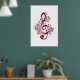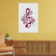 Pink treble clef with delicate, detailed pink Japanese cherry blossoms against white background painted over with light blue paint Blooming pink sakura.