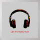 Une bonne idée pour décorer un mur de chambre pour le musicien. Image d'un casque de dee-jay avec le texte 'Let the music play'. Vous pouvez modifier la couleur grise en arrière à l'aide du bouton "customiser", et ajouter tout autre texte