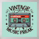 Vintage Music Freak, ce design musical dispose d'une cassette de style années 80 avec un texte disant, "Vintage Music Freak".