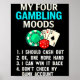 Affiche My Four Gambling Moods Funny Casino Gambler Quote