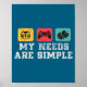Affiche My Needs Are Simple Gamers Fun,gamer Dad Funny Fat