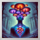 Une oeuvre d'art surréaliste et symbolique représentant une figure humanoïde lumineuse avec des champignons éclatants et éclatants poussant de la tête et de la poitrine. Située dans une forêt enchantée et brumeuse, cette pièce visionnaire représente la transformation, la conscience élargie et la symbiose profonde entre l'esprit humain et la nature. Les champignons rayonnants symbolisent l'illumination psychédélique, la croissance spirituelle et l'interconnectivité infinie de l'existence. L'atmosphère éthérée et onirique évoque un sentiment de mysticisme, guidant le spectateur dans un royaume d'introspection et de transcendance.